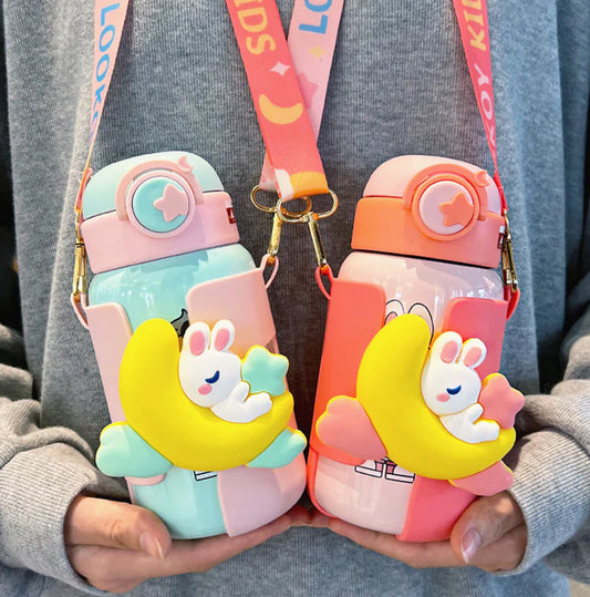 Kawaii Rabbit Vacuum Stainless Steel Water Bottle for School Kids - 500 Ml