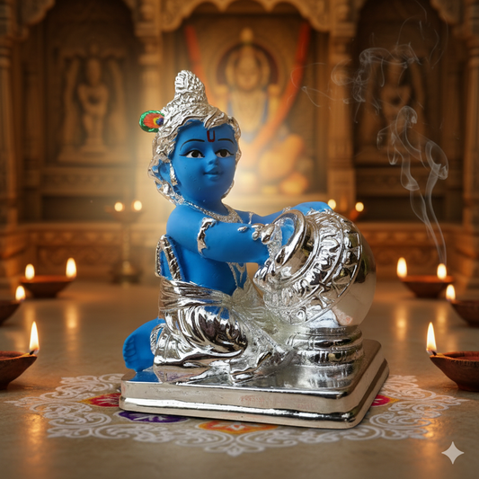 Silver Plated Laddoo Gopal Krishna Ji Idol