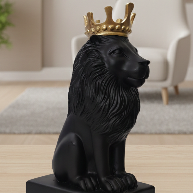 Crafted by skilled artisans, this statue is made from high-quality polyresin with a premium black finish and a contrasting gold crown. The intricate detailing of the lion’s mane, facial expression, and posture reflects fine craftsmanship and modern aesthetics. The black-and-gold colour combination gives the statue a luxurious, contemporary appeal that blends effortlessly with modern and classic interiors.